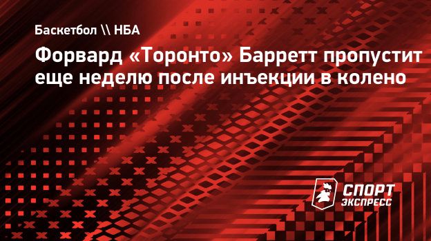 Форвард «Торонто» Ар Джей Барретт пропустит как минимум еще неделю после инъекции богатой тромбоцитами плазмы в поврежденное правое колено, сообщила клубная пресс-служба.