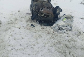 На фото с места происшествия видно, что после столкновения легковушка отлетела в кювет, перевернувшись на крышу.
