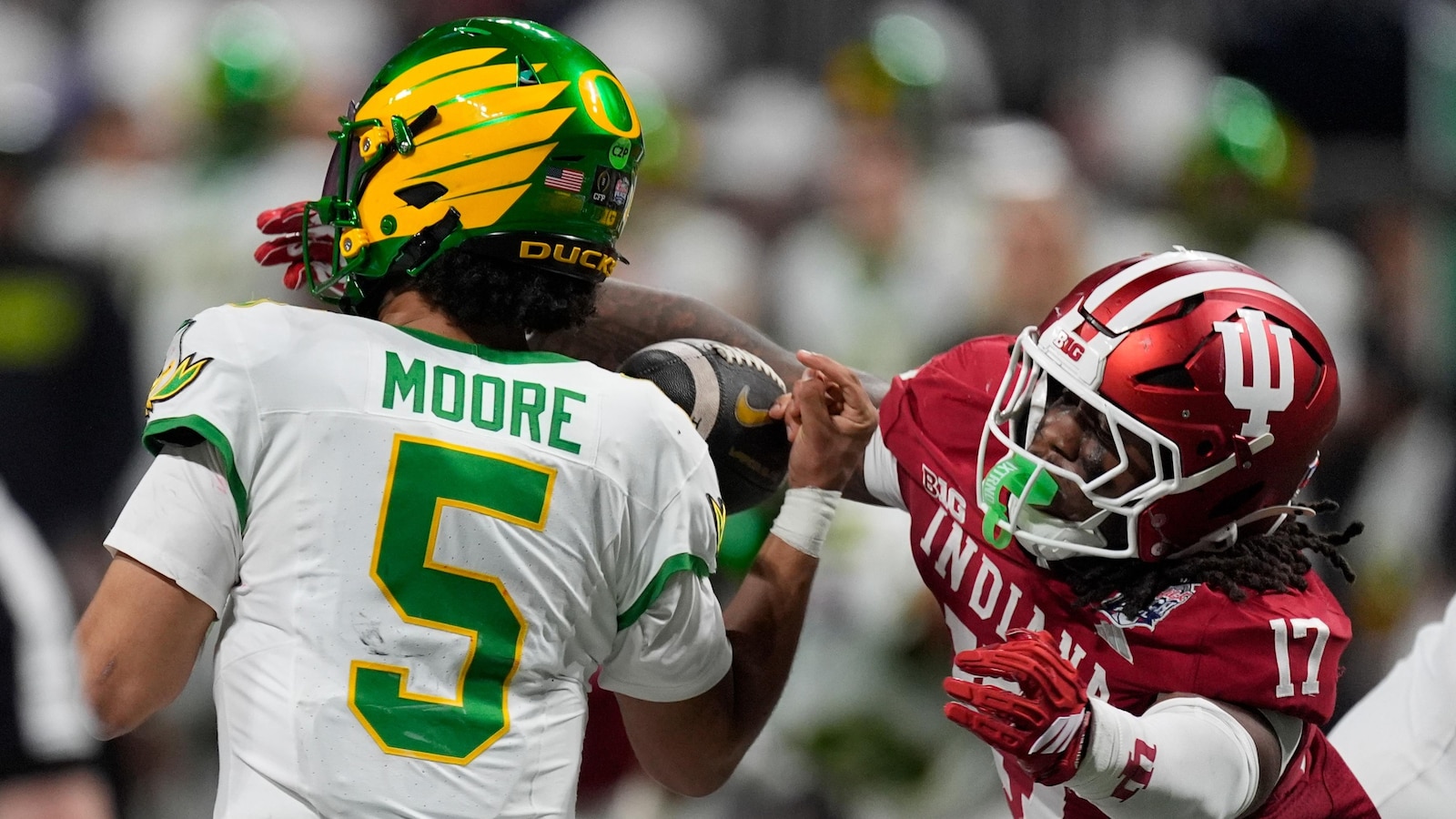 No. 1 Indiana romped into the national championship game with a 56-22 blowout of fifth-seeded Oregon in the College Football Playoff semifinal on Friday, a one-sided affair that was essentially over by the time the Ducks dragged themselves to the locker room — presumably to discuss seating arrangements for the long flight home even with another half still to go.