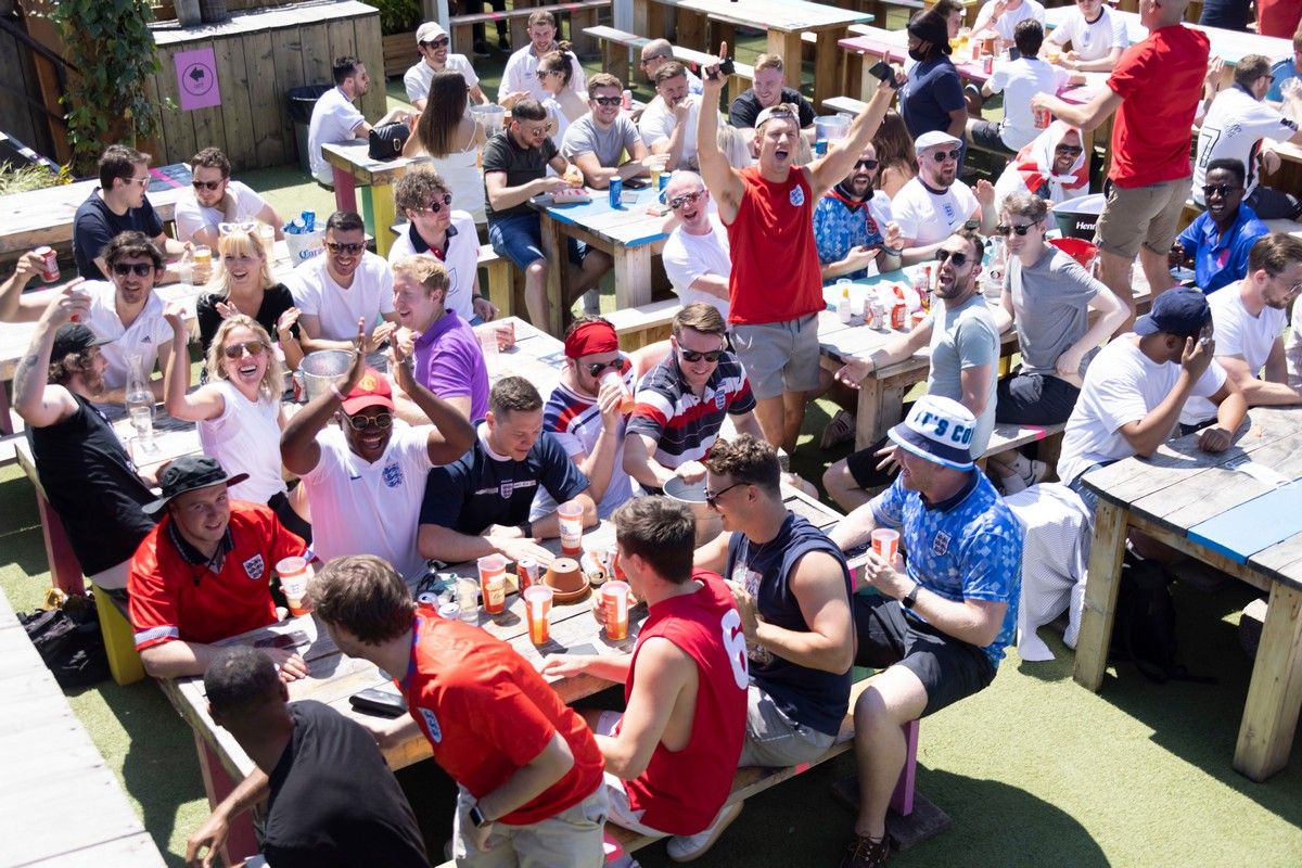 Температура в 78 градусов по Фаренгейту (25,5°C) в субботу заставила британцев отправиться на пляжи, загорать в парках и наслаждаться поездкой на скачки в жару.Многие явно наслаждались погодой в разгар жары, собравшись в самых красивых местах страны.Когда солнце зашло, веселье продолжилось, и толпы людей направились в бары и пабы страны, чтобы насладиться теплым вечером.На фотографиях видно, как группы посетителей пабов развлекаются в центре Лидса, размахивая флагами Англии в преддверии матча открытия Евро "Three Lions" вчера вечером.В воскресенье днем температура достигла максимума в 84,2 градуса по Фаренгейту (29°C).