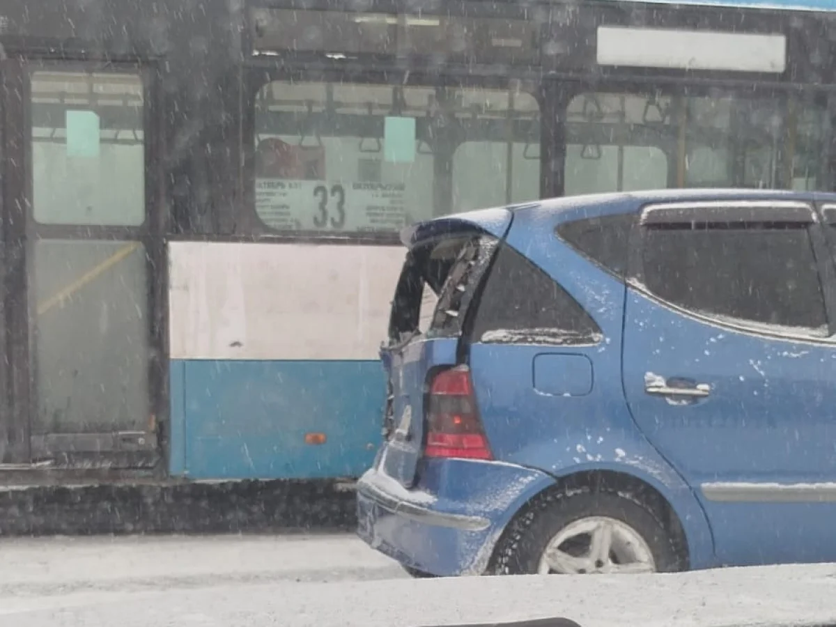13 января в районе Студгородка Усть-Каменогорска произошло тройное ДТП с участием автобуса, Mercedes и ВАЗ 2109.