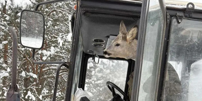 Животное, которое обычно избегает людей, не испугалось и спокойно подошло к лесникам. Как рассказывает местное издание kirovsk.by, косуля была голодной — ее покормили хлебом, после чего она даже забралась в кабину трактора, чтобы согреться.