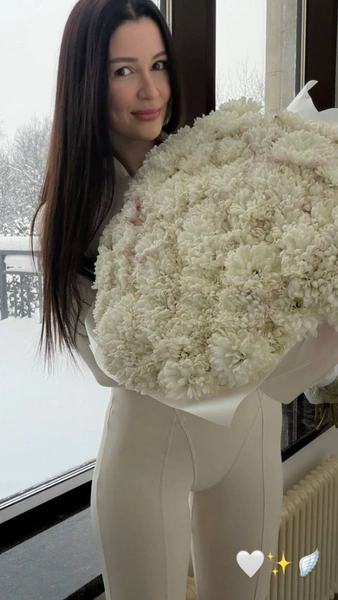 «Спускаюсь я с утра, а здесь вот такая меня ждет красота. У меня лучшая семья. Это так мило, так приятно. И вот такой еще зимний букетик», — похвасталась Заворотнюк.