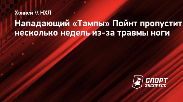 Нападающий «Тампы» Брэйден Пойнт пропустит несколько недель из-за травмы нижней части тела, сообщает пресс-служба клуба.