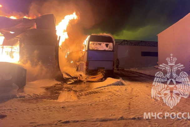 Загорелся одноэтажный ангар площадью 80 квадратных метров и автобус.