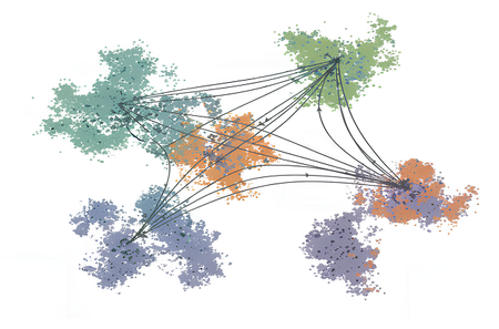 Далее для набора гомологичных белков строится граф ближайших соседей: каждая последовательность соединяется с несколькими наиболее близкими в латентном пространстве. Для каждой пары соседей можно оценить направление вероятного эволюционного перехода, сравнивая условные вероятности последовательностей друг относительно друга. Интуитивно, если последовательность B имеет более высокую вероятность в контексте A, чем наоборот, то переход от A к B считается более вероятным в эволюционном смысле.