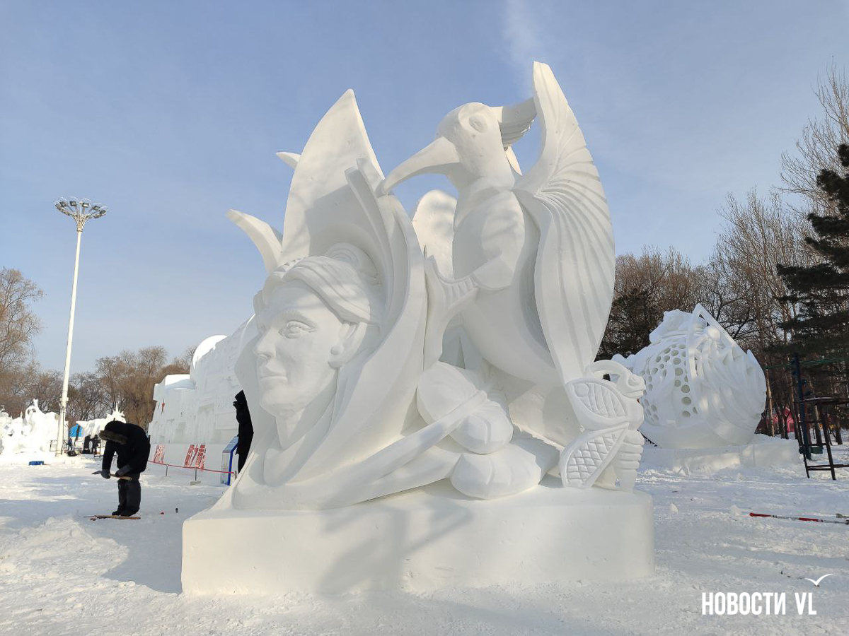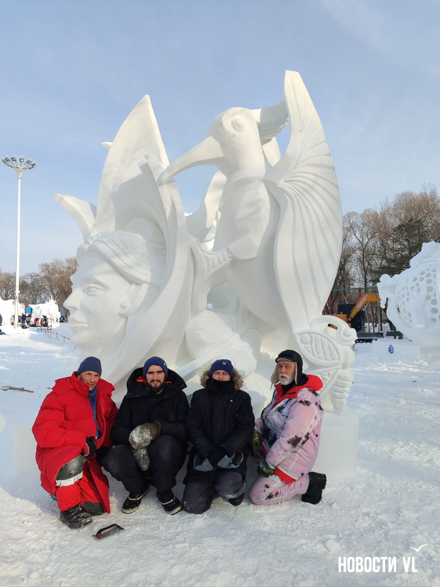 На 28-м международном конкурсе снежных фигур в Харбине представители Владивостока стали вторыми со скульптурой «Цветы и птицы» и получили приз за мастерство за работу «Фолк» изо льда. Работа художников сложная и травмоопасная: так, у команды из Индии обрушилась огромная крылатая лошадь, а хабаровчанин оступился и сломал ногу. У наших земляков всё обошлось – пришлось только переделывать хрупкий цветочный бутон из снега.