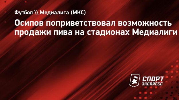 Президент Медиалиги Николай Осипов в интервью «СЭ» высказался о возможном возвращении пива на российские стадионы.