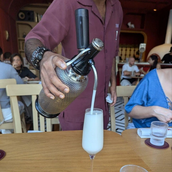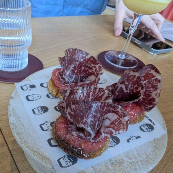 Тебе неспешно подают около дюжины небольших блюд, одно за другим. К каждому — безалкогольный напиток, который так подходит под еду, что кажется, будто эти сочетания придумали в раю. Например, безалкогольное «шардоне» с оливковым маслом и лимонным соком, в пару к нему — тонкий слайс стейка вагю на хлебце с подушкой из томатов. Работает идеально: такой баланс жирности и свежести — закачаешься.