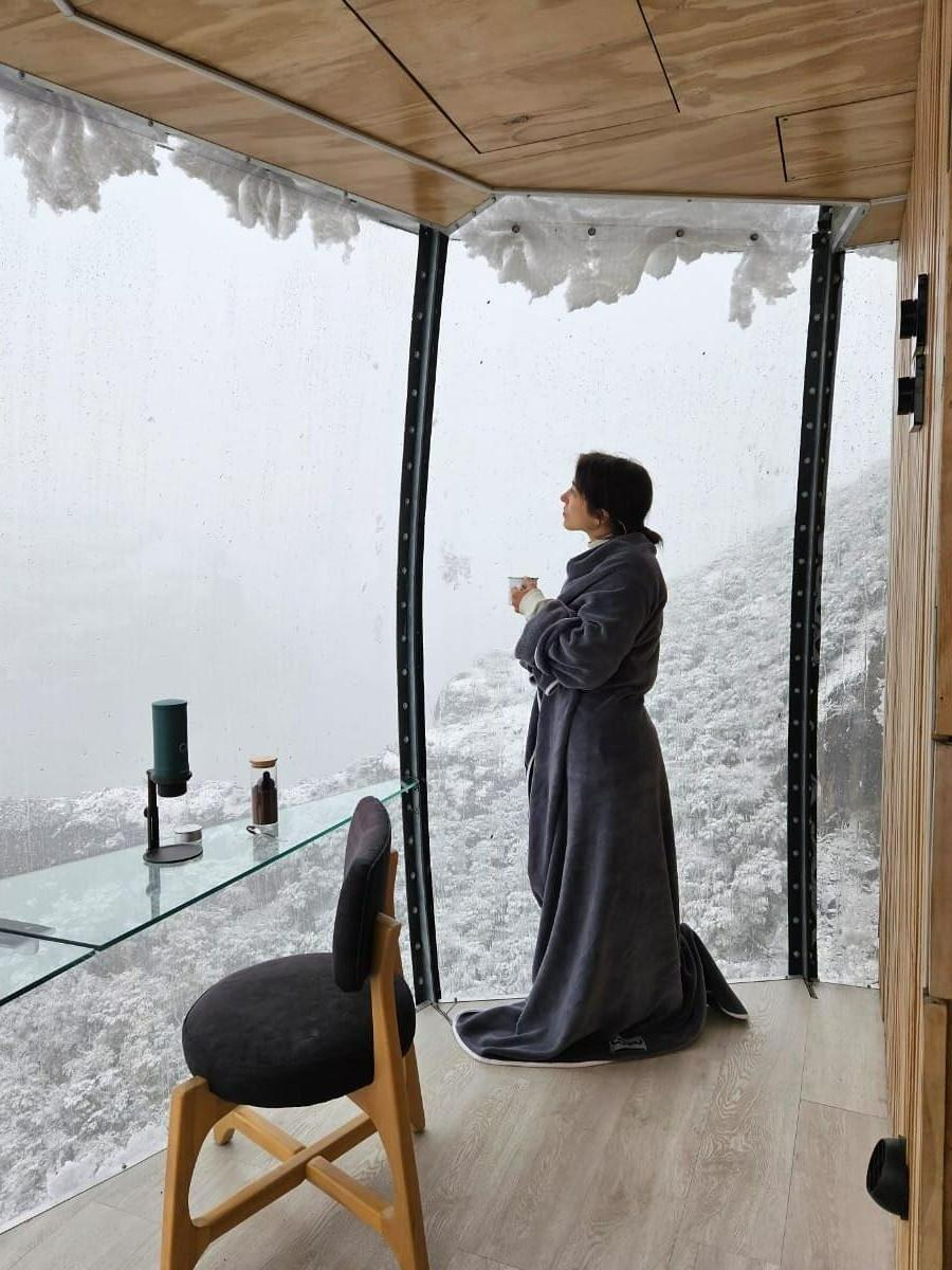 Капсулы спроектированы так, чтобы обеспечить максимальный обзор на величественную гору Фитцрой и окружающие ледники. Номер представляет собой три этажа с панорамным остеклением: