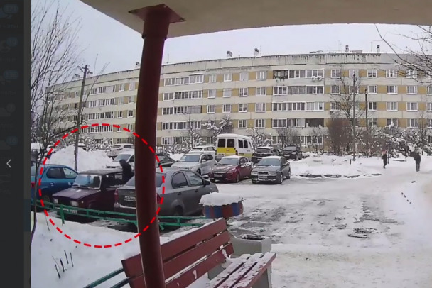 Камера домофона дома № 16 на улице Верхней в Колтушах около часа дня 16 января сняла движения двоих мужчин в темном у "Жигулей". Один из них остановился у вишневого седана и после нескольких манипуляций открыл дверь и сел за руль.