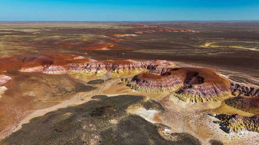 Александра Темникова впервые увидела эту будто инопланетную местность осенью 2025 года – разноцветная долина заняла прочные позиции в ее личном ТОП-5 красивейших мест Казахстана. Что еще удивило путешественницу во время поездки в Торгай?