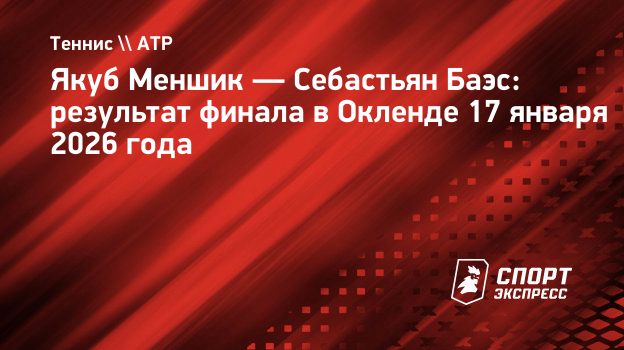 Чех Якуб Меншик стал победителем турнира ATP 250 в Окленде.