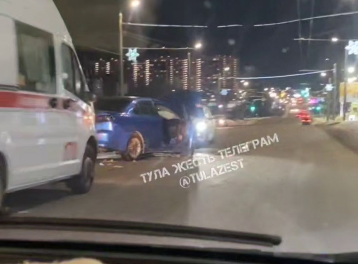 Ночью на Октябрьской улице в Туле столкнулись две легковушки. Об этом очевидцы рассказали в социальных сетях.