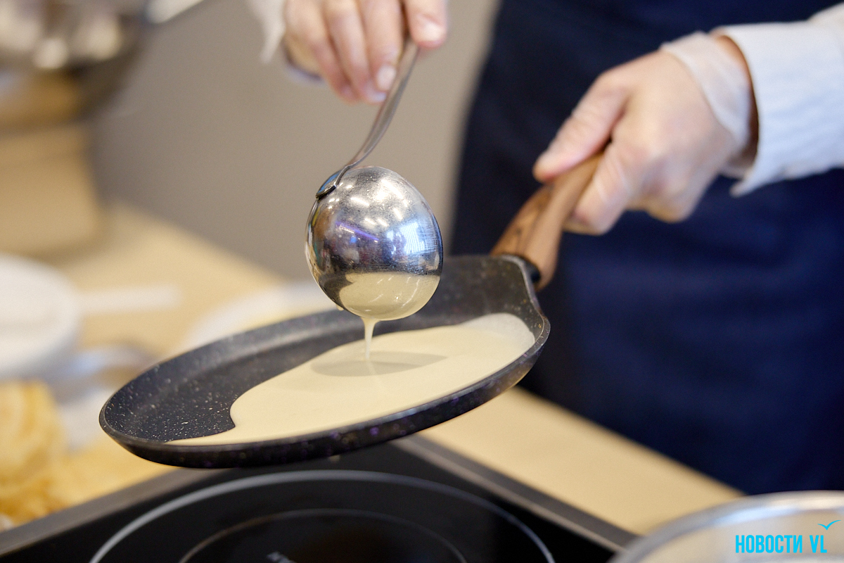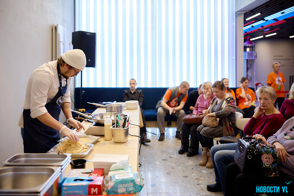 На «День блина» некоторые слушатели пришли уже подготовленные – принесли с собой ручки с тетрадями и записывали рецепты. Мероприятие выдалось действительно уникальным, ведь благодаря камерной атмосфере все нюансы приготовления можно было сразу напрямую узнавать у шеф-поваров известных во Владивостоке заведений.