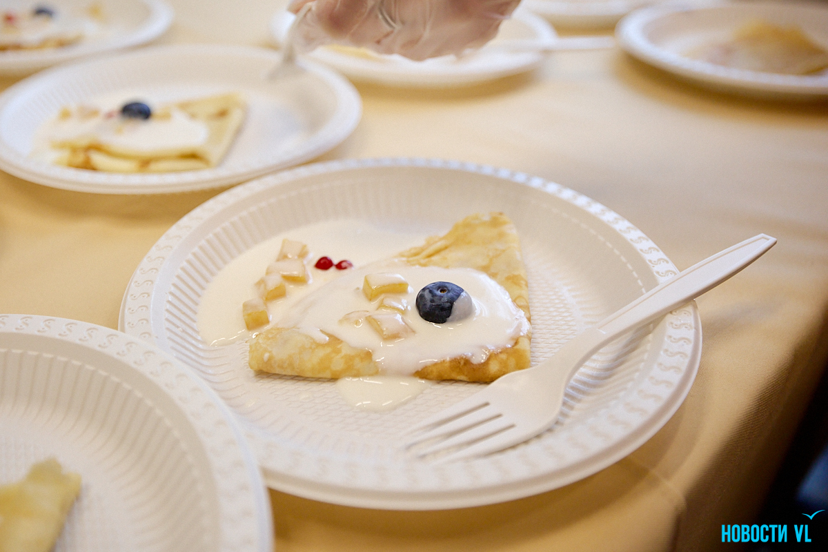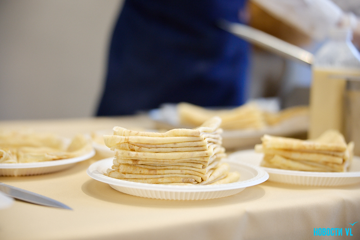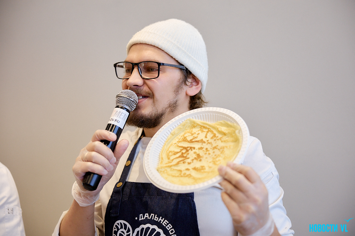 Традиционно «День блина» раньше проводили на центральной площади Владивостока. Он шёл в одной линии и с другими «съедобными» мероприятиями, например, фестиваль пельменей. Его, кстати, тоже организовали в этом году в наццентре. Основатель «Омлет-станции» и постоянный гость этих событий Азамат Мухамедов рассказывает, что ничего против таких переездов не имеет – наоборот, теперь тепло и более комфортно вести мастер-класс и диалог с аудиторией.