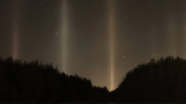 Для возникновения световых столбов необходимо сочетание пяти факторов: мороза около 20 градусов, низкой облачности, отсутствия ветра, темного времени суток и наличия источника света.