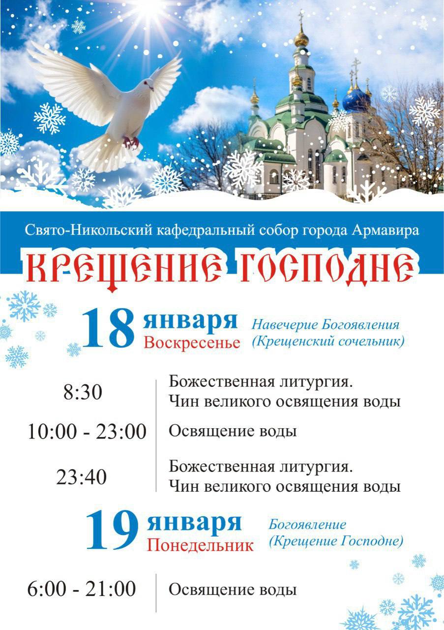 Как ранее сообщал портал gorodarmavir.ru, жители Армавира 19 января отметят праздник Крещения Господня.