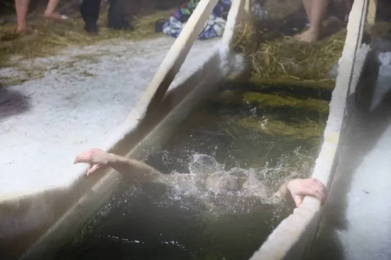 В канун Крещения Господня многие верующие окунаются в прорубь. В этом году в Новосибирске открыли две официальных купели. На одной из них — в Затоне — побывал наш фотограф.