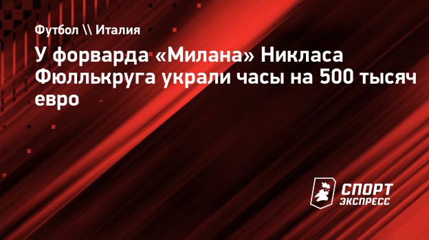 Нападающего «Милана» Никласа Фюллькруга ограбили в отеле, сообщает La Repubblica.
