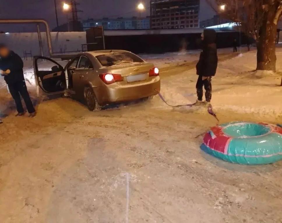 В Астрахани две иномарки которых перевозили пассажиров на тюбингах, закреплённых с помощью буксировочного тросса. Рискованное развлечение на трассе не укрылось от правоохранителей.