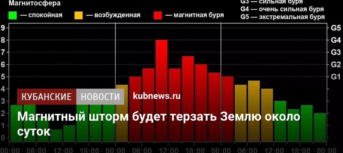 Уточняется, что международный прогностический центр заявил об ожидающейся магнитной буре, которая может превысить уровень G4.