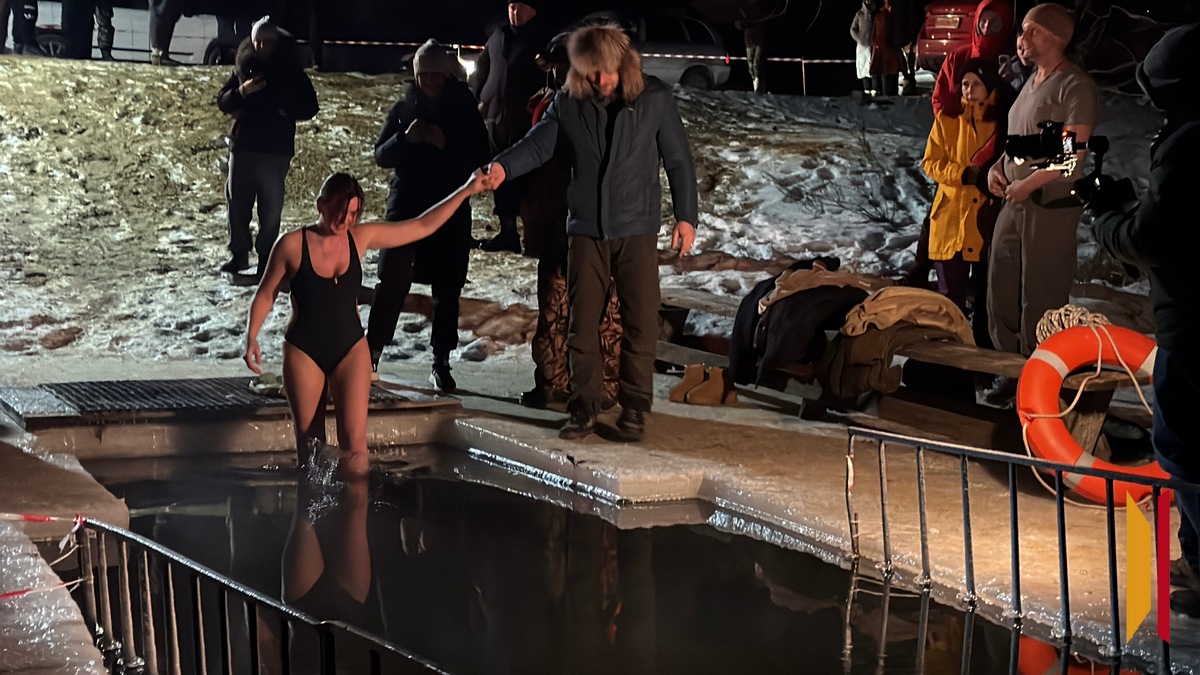 Купания на озере начались уже после полуночи. Некоторое время никто не решался войти в воду. Тишину нарушил уверенный шаг – первой в купель вошла жительница села Карачун Юлия. Этот момент стал своего рода сигналом. Вслед за ней люди начали подходить к воде по очереди.