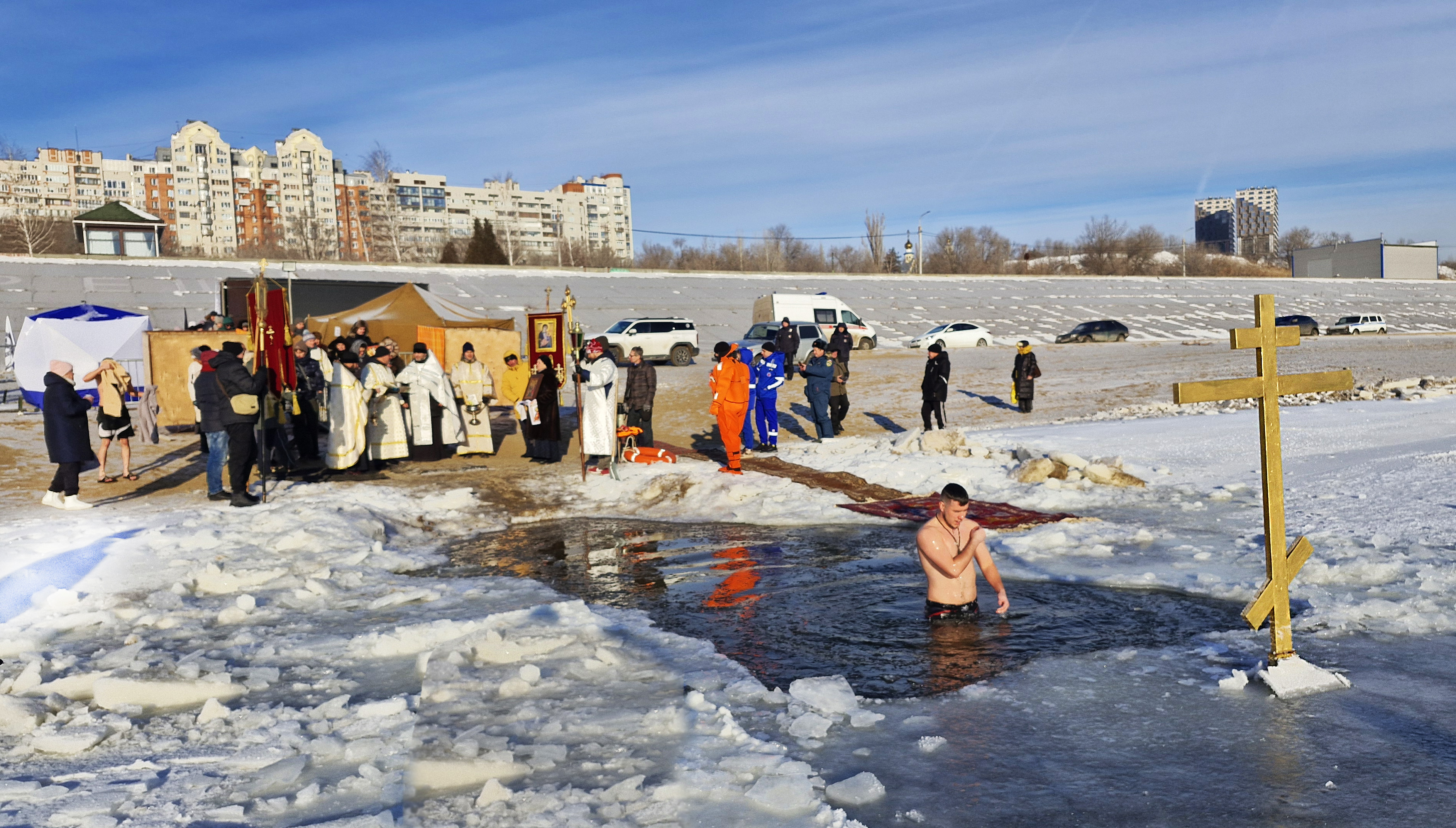 После этого к крещенской купели потянулись смельчаки, которые с особой радостью стали трижды погружаться в освященную ледяную волжскую воду, совершая крестные знамения.
