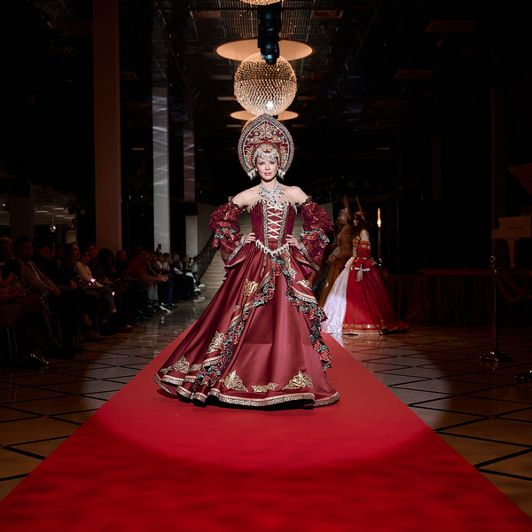 Следующей остановкой модного экспресса стал Милан и историческая родина карнавала – Венеция. Карнавальная эстетика вдохновляет дизайнеров по всему миру: маски и яркие ткани переплетаются в коллекциях, создавая драматургию цвета, фактуры и формы. Коллекцию праздничных и карнавальных платьев представил бренд Болеро (дизайнер Людмила Хазова).