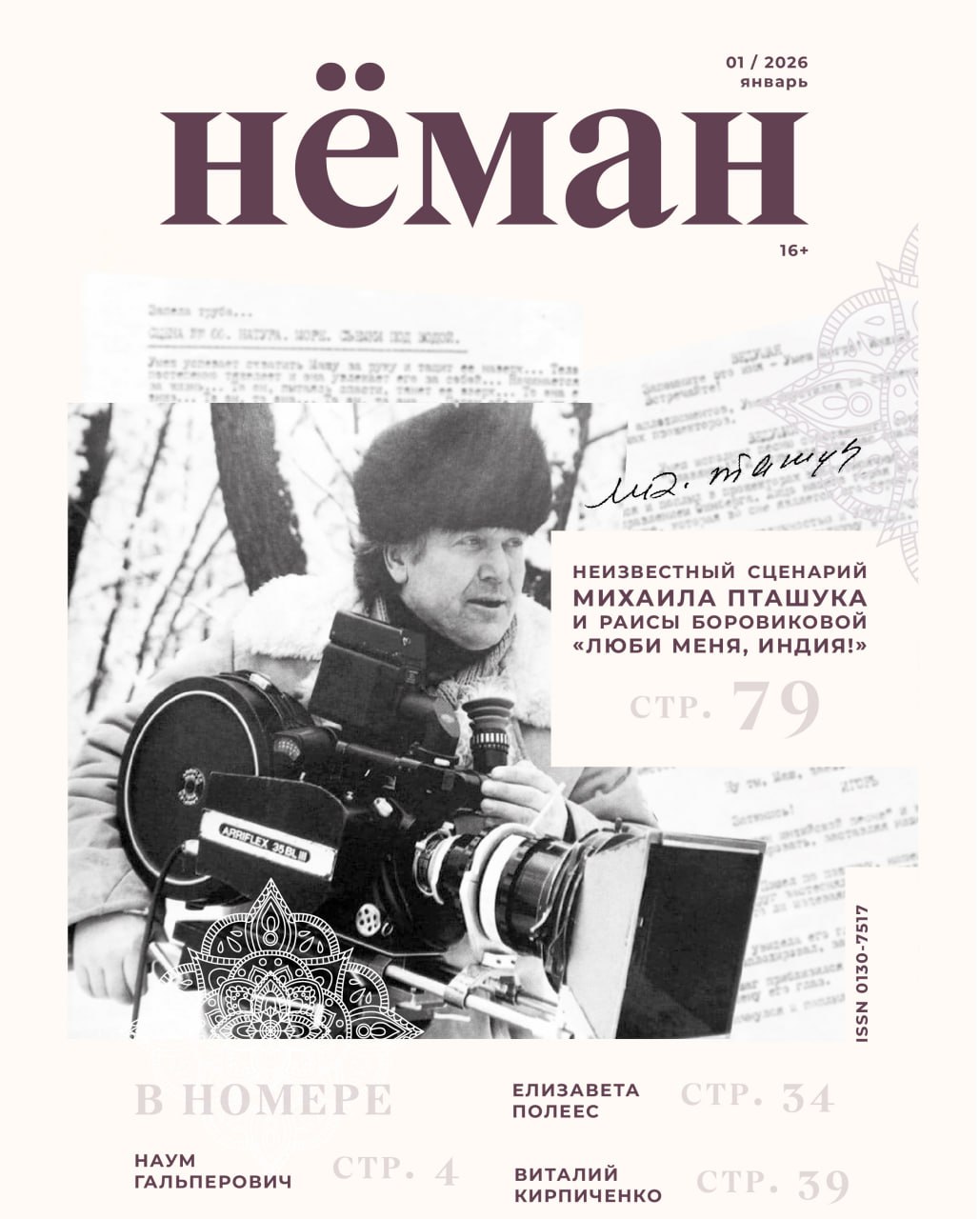 В январском выпуске журнала «Нёман» царит особенное настроение, ощущается стремление предложить аудитории нечто свежее, оригинальное и значимое. Главной находкой стал ранее неизвестный сценарий нереализованного белорусско-индийского кинопроекта «Люби меня, Индия!», созданный в конце 1990-х годов знаменитым режиссером Михаилом Пташуком в соавторстве с писательницей Раисой Боровиковой.