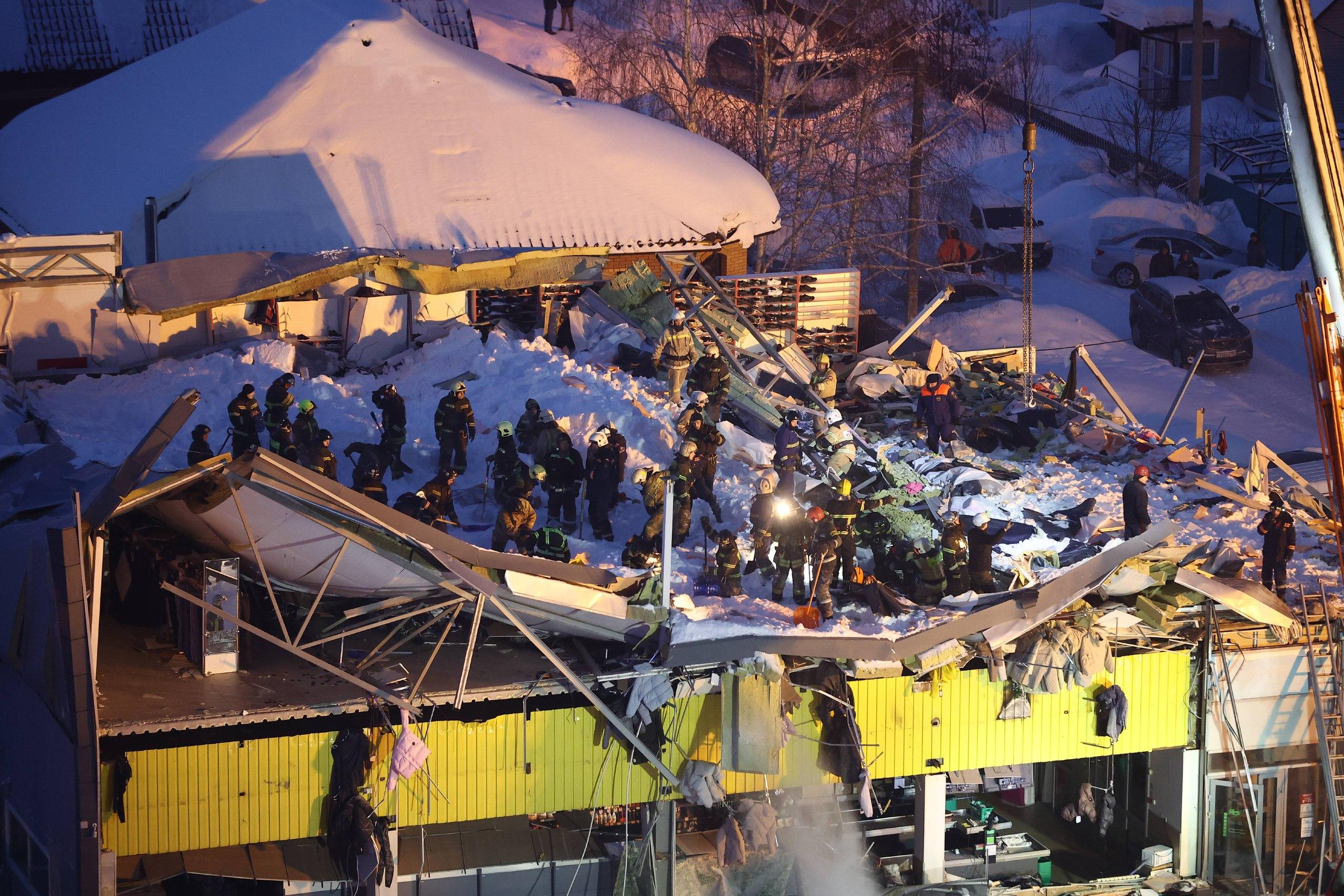 На месте происшествия оперативно работали подразделения МЧС, бригады скорой помощи, полиция и представители прокуратуры. Спасатели разбирали завалы вручную и с помощью техники, параллельно проводилась расчистка территории, в том числе уборка снега с аварийных конструкций, чтобы снизить риск повторных обрушений.
