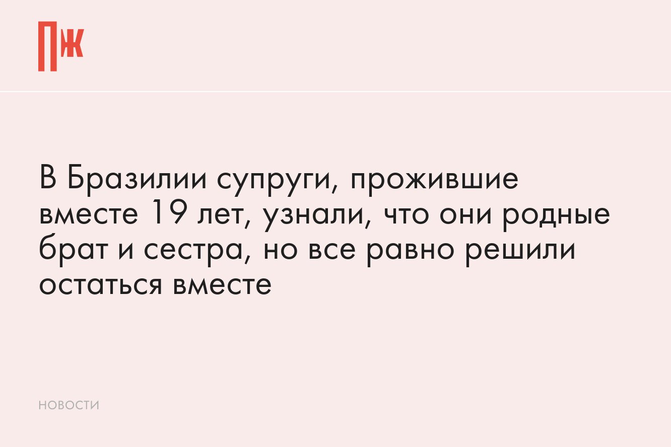 В Бразилии пара, состоявшая в отношениях 19 лет и имеющая общую дочь, пережила шок, обнаружив, что они являются родными братом и сестрой. Адриана и Леандро, чьи матери бросили их в детстве, годами искали своих родителей, не подозревая, что у них одна и та же мать по имени Мария. Об этом сообщает Mirror.