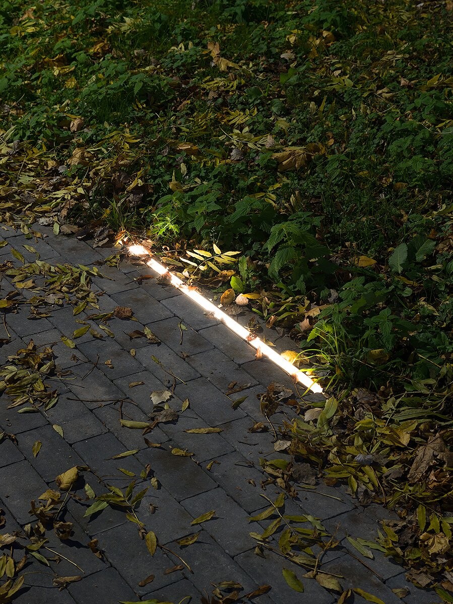 Здесь же организованы амфитеатр и смотровая площадка, ограждения которых в темное время суток эффектно подсвечиваются.