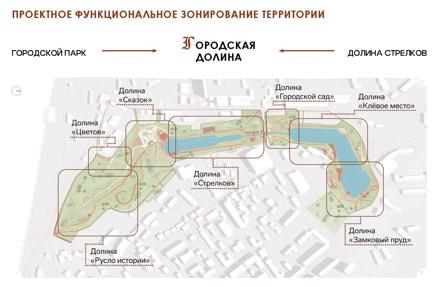 Это протяженная цепочка прудов «Городская долина», объединенных зелеными коридорами. В пешей доступности от парка проживает треть населения, а также находится большая часть сервисов и объектов культурного наследия.