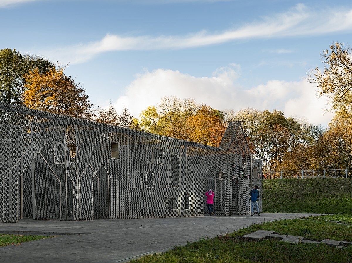 Новые входные группы также вдохновлены элементами локальной идентичности: арочными проемами замка и арками парковых порталов начала прошлого века.
