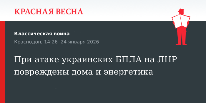 Повреждения жилых домов и элементов энергосистемы зафиксированы после атаки украинских беспилотников на территорию ЛНР, сообщил глава администрации Краснодона Сергей Козенко, 24 января передает правительство региона в Telegram-канале.