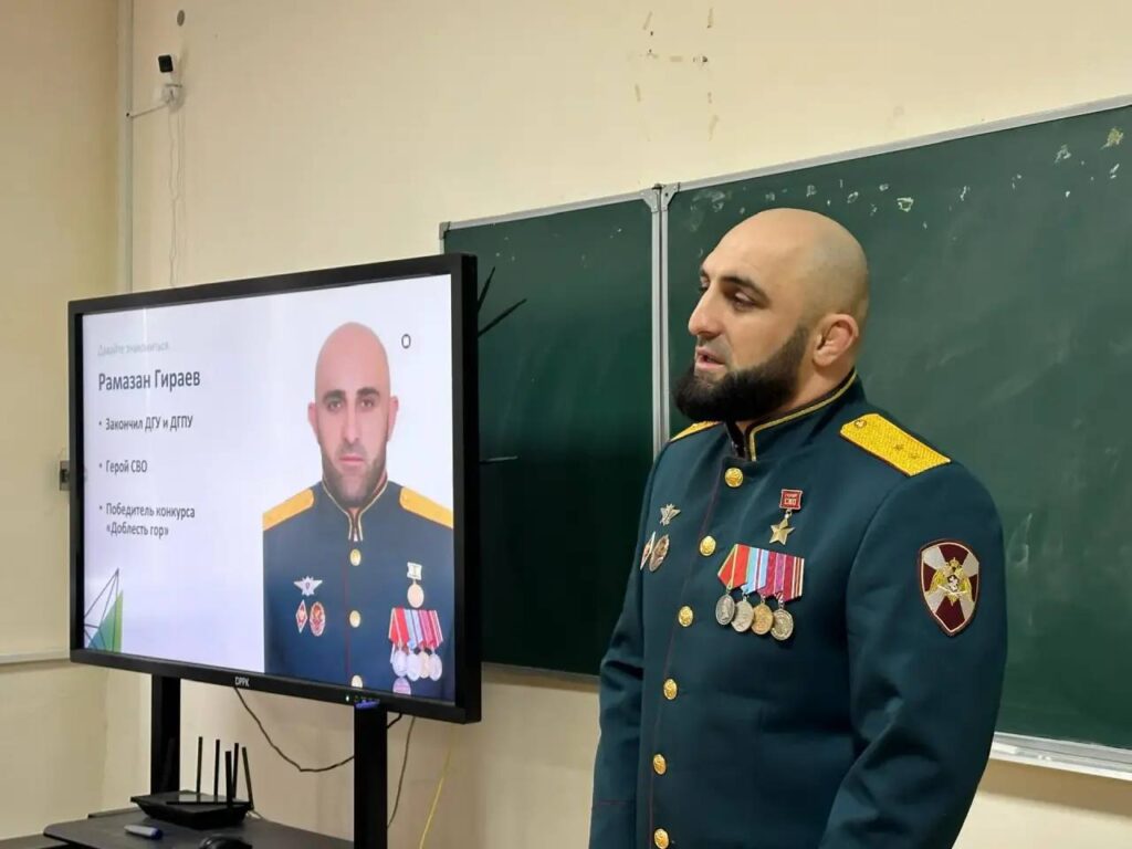 Участник программы «Доблесть гор» Рамазан Гираев провёл урок мужества для студентов в Каспийске