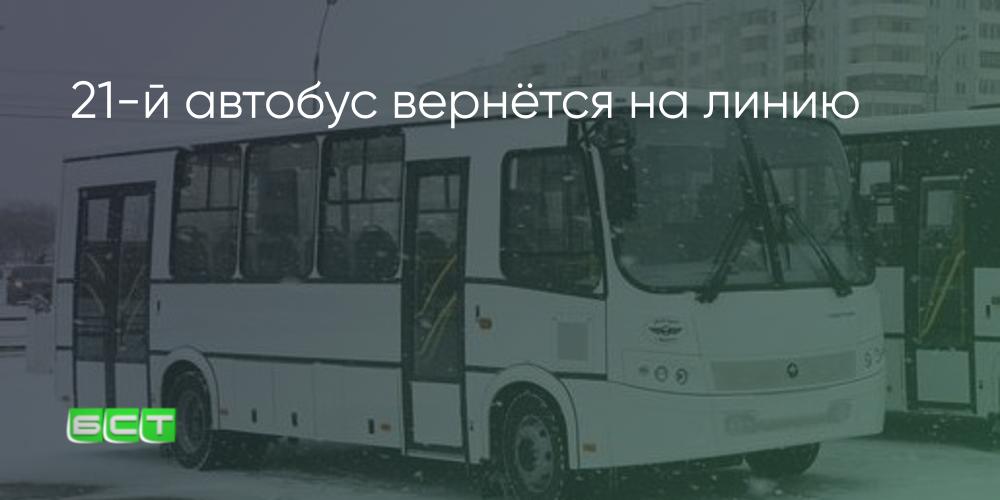Автобус № 21 возобновит движение с 1 февраля. Об этом сообщает Братская студия телевидения со ссылкой на мэрию. По итогам аукциона, перевозки будет выполнять Центральное автотранспортное предприятие.
