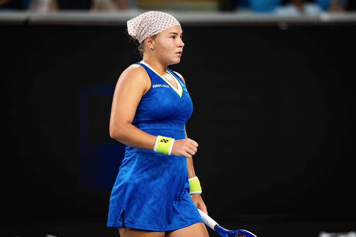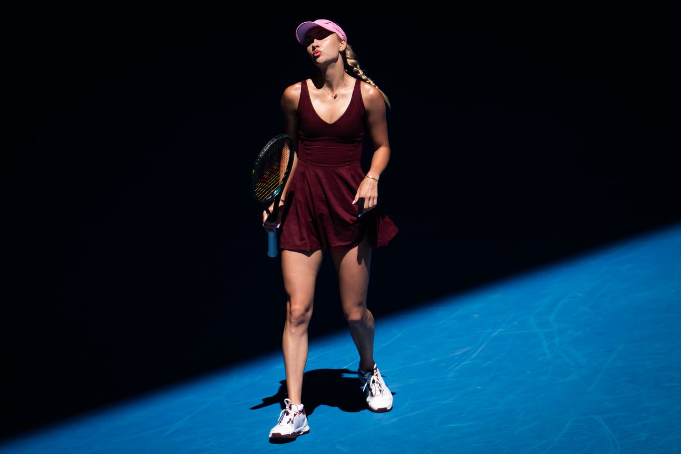 В потоке неоновых луков на Australian Open бордовый образ Анастасии Потаповой смотрелся особенно стильно. Наряд глубокого винного цвета выглядел сдержанно и элегантно, напоминая скорее вечернее платье, чем обычный теннисный аутфит. Это редкий случай, когда простота смотрелась дороже любых сложных дизайнерских решений.