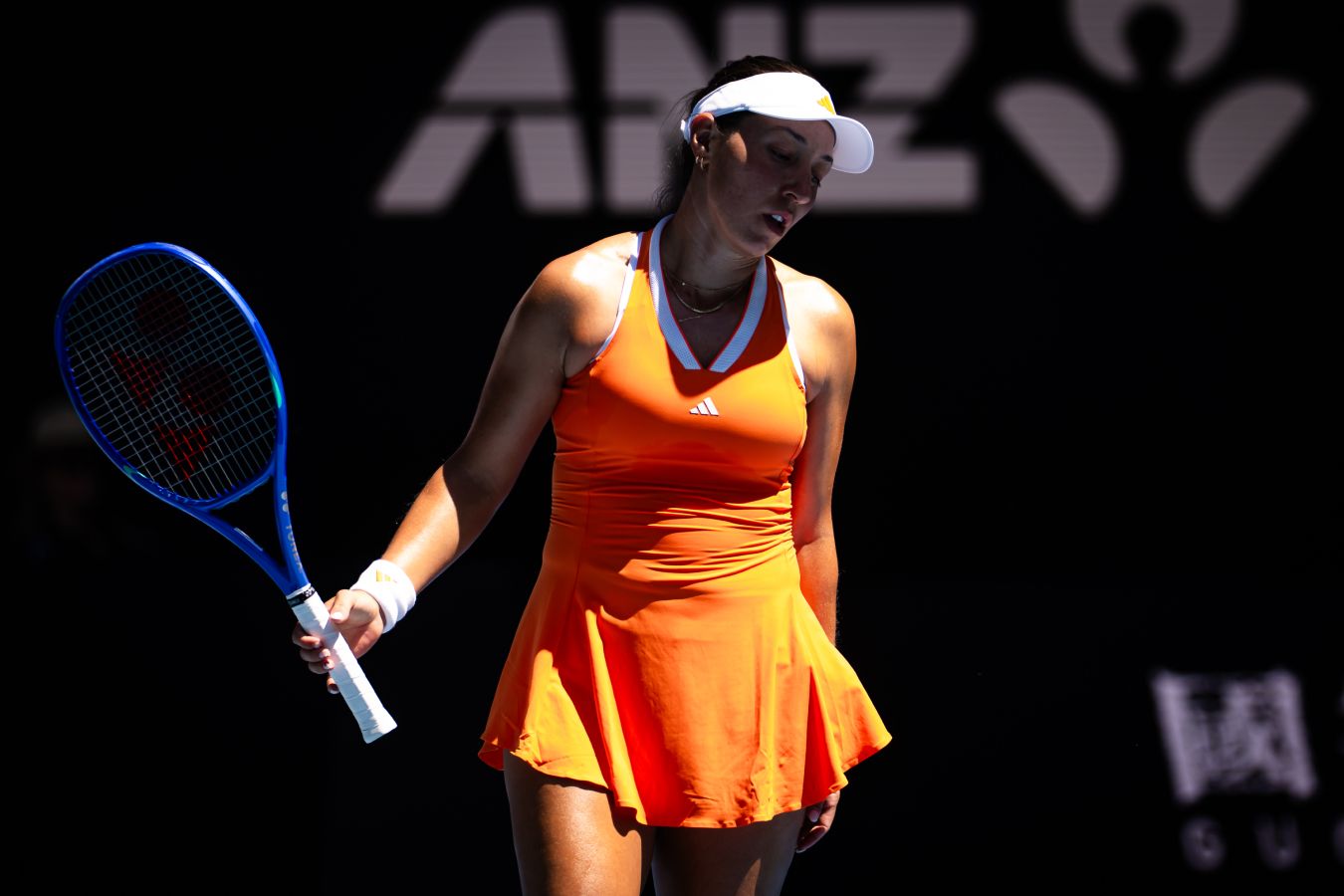 Джессика Пегула вышла на корты Мельбурна в ярком оранжевом платье, привлекающем внимание болельщиков. Белые аксессуары с оранжевыми деталями помогли добавить контраста и сделать образ цельным. Такой наряд точно выделил американку на фоне соперниц и придал её внешности свежести.