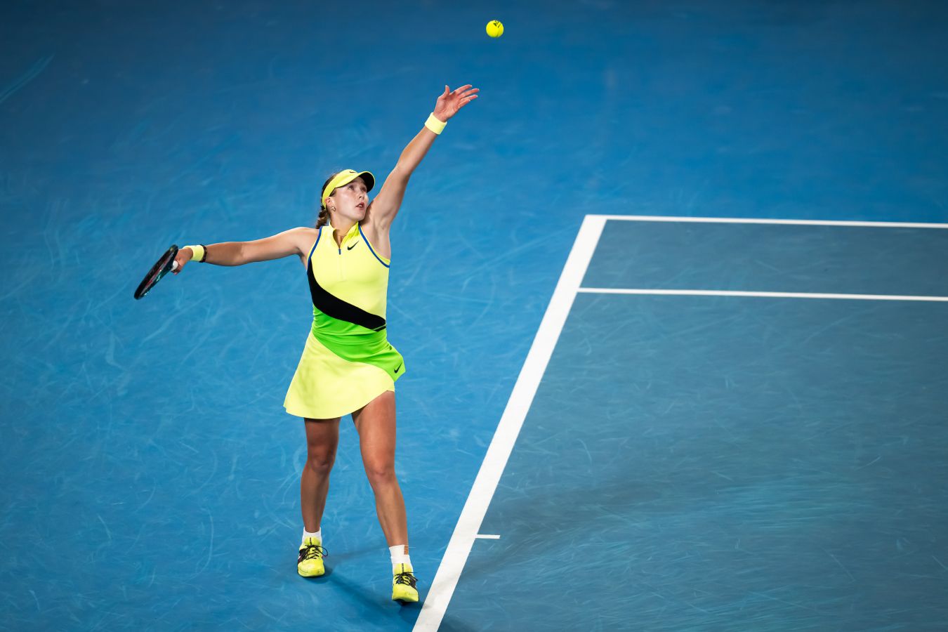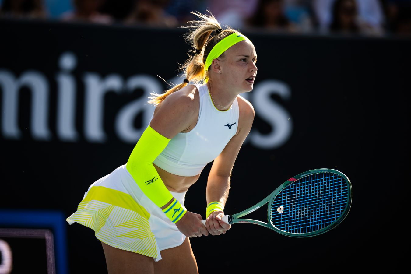 Ребекка Шрамкова выбрала для Australian Open белый комплект с неоново-жёлтыми акцентами, которые сразу бросались в глаза. В образ спортсменки органично вписалась не только повязка на голову, но и компрессионный нарукавник! На фоне более звёздных теннисисток она выглядела выигрышнее, ярче и интереснее.
