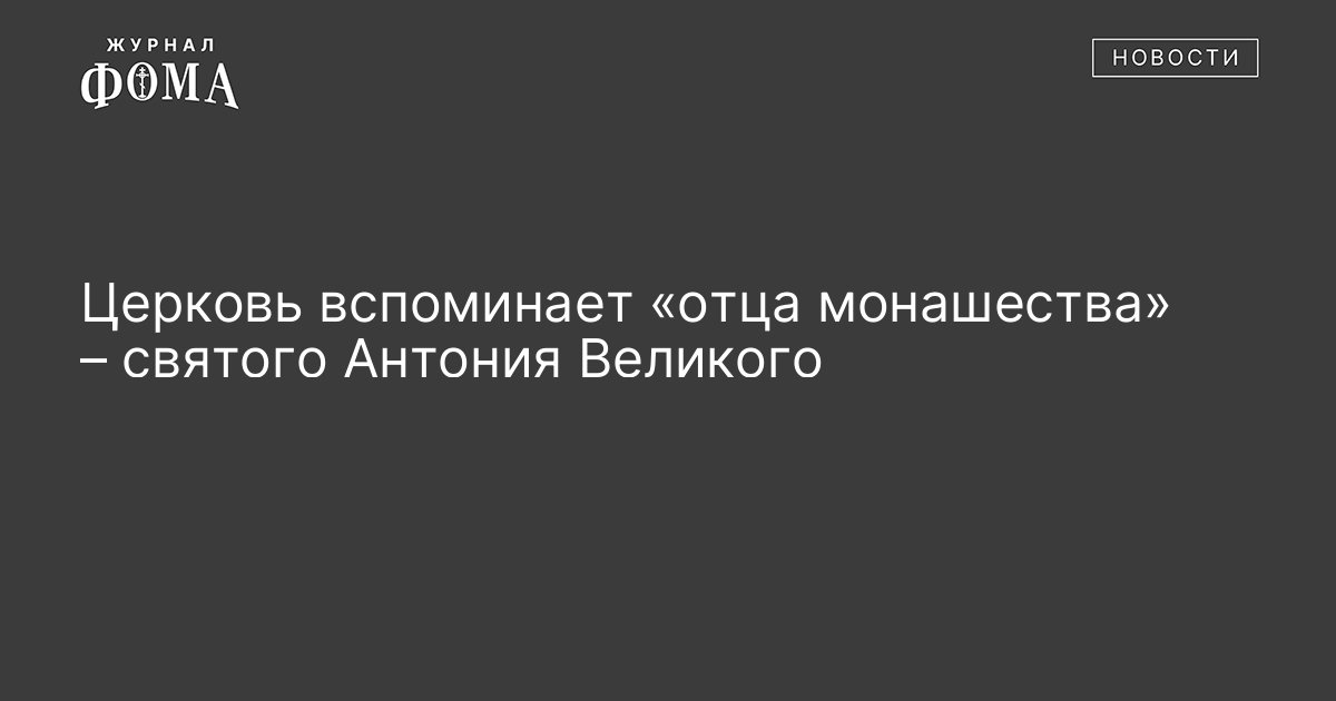 Память величайшего подвижника Божия, основателя монашества – преподобного Антония Великого – празднует Православная Церковь 30 января.