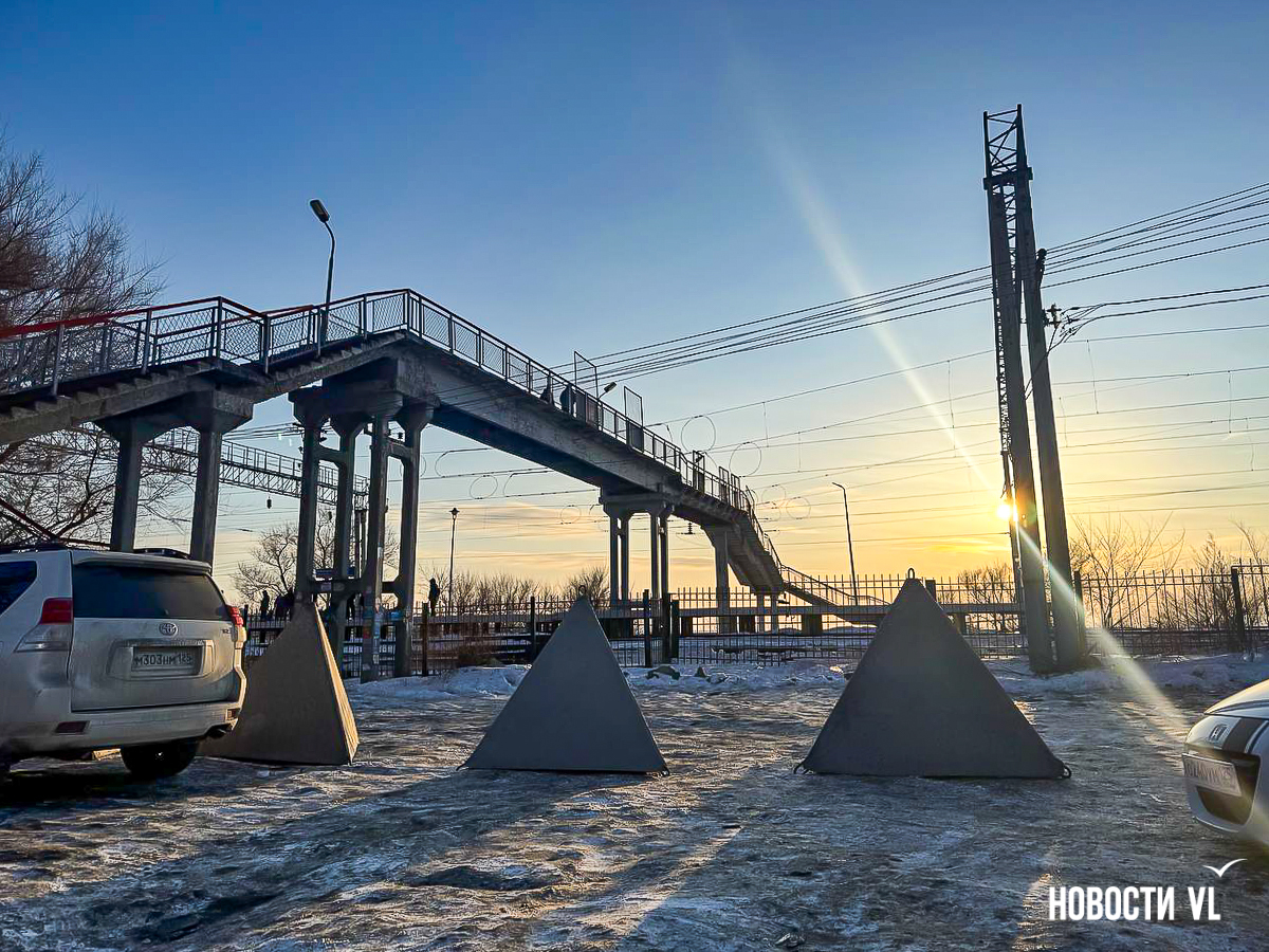 Жители Второй Речки обратили внимание на несколько больших пирамид, которые установили около виадука, ведущего к набережной Арсеньева. В пресс-службе РЖД уточнили, что компания установила на своей территории ограждения для ограничения парковки.