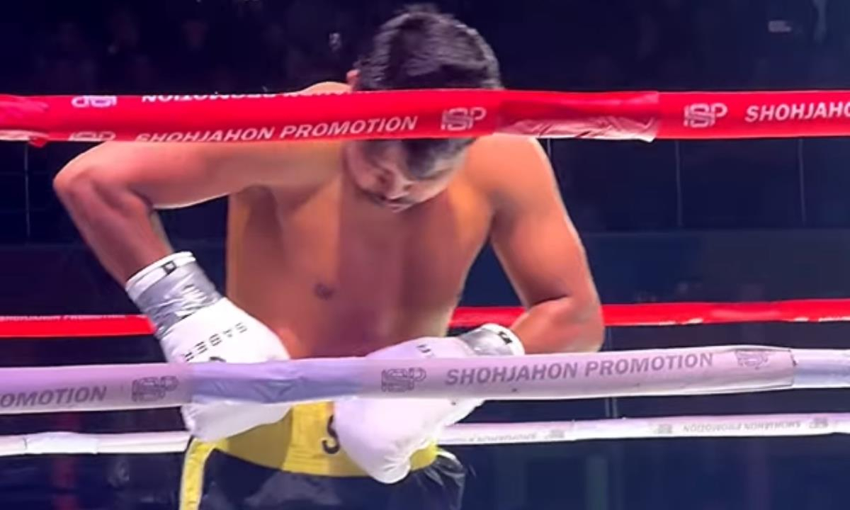 В главном поединке вечера профессионального бокса в Самарканде (Узбекистан) узбекистанский боксёр Шохжахон Эргашев (25-2, 22 КО) одержал досрочную победу над индийским спортсменом Гурпритом Сингхом (11-3-1, 6 КО), передаёт Sports.kz.