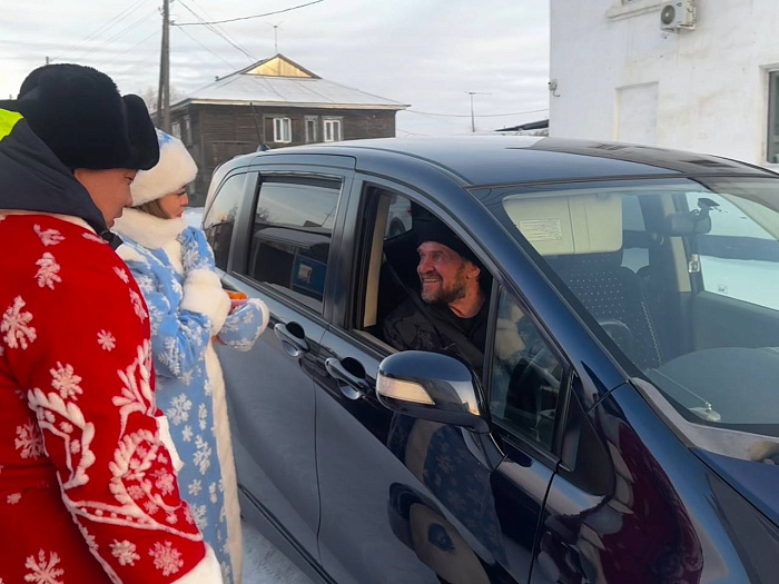 Сотрудники Госавтоинспекции Баргузинского района в преддверии Нового года присоединились к традиционной акции «Полицейский Дед Мороз». В праздничных костюмах Деда Мороза и Снегурочки они поздравили водителей, пассажиров и пешеходов с наступающим праздником, а также провели профилактические беседы о важности соблюдения правил дорожного движения.