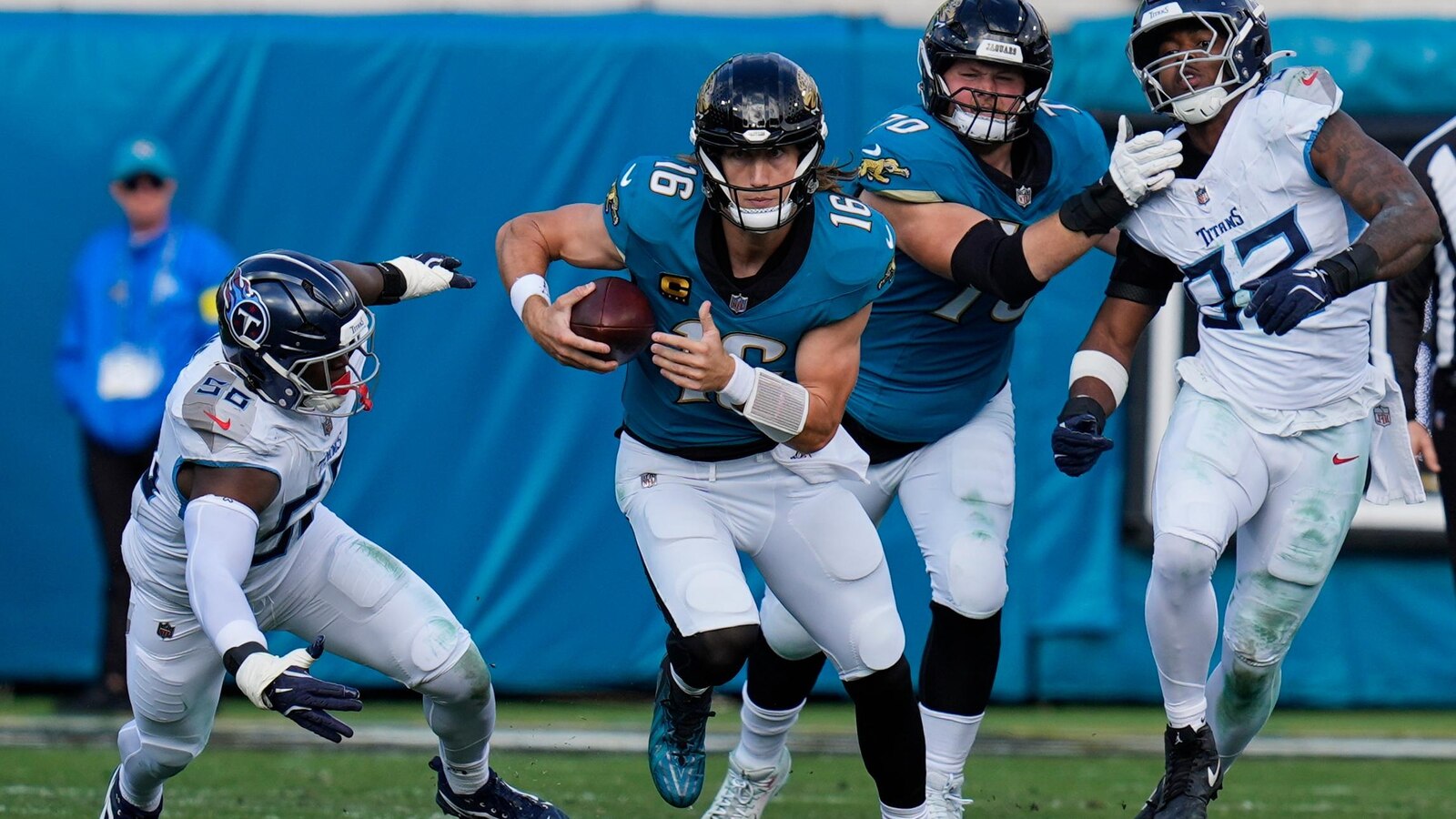 JACKSONVILLE, Fla. -- Trevor Lawrence threw three touchdown passes, breaking the franchise’s single-season record for total scores, and the Jacksonville Jaguars won the AFC South and earned a home playoff game with a 41-10 drubbing of Tennessee on Sunday.