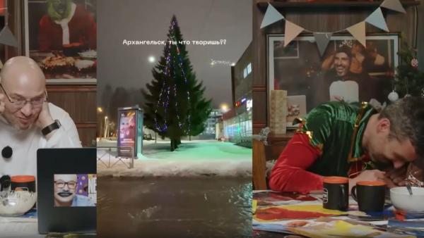 Видео с украшенной ёлкой на фоне огромной лужи в Архангельске «залетело» в популярный тренд в интернете, а затем попало в нарезку смешных видео в шоу «Нельзя смеяться».
