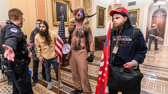 Остановить многотысячную толпу правоохранителям не удалось. Разбив окна, митингующие ворвались в Капитолий и оказались в Национальном скульптурном зале, кабинетах конгрессменов и сенаторов, в том числе спикера Палаты представителей Нэнси Пелоси, а также в других помещениях. Сторонники Трампа громили интерьеры и распыляли огнетушители в сторону полицейских.