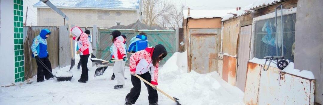 В рамках масштабной экоакции «Таза Қазақстан» волонтеры молодёжного ресурсного центра «Астана жастары» помогают одиноким пенсионерам и пожилым людям с уборкой снега.