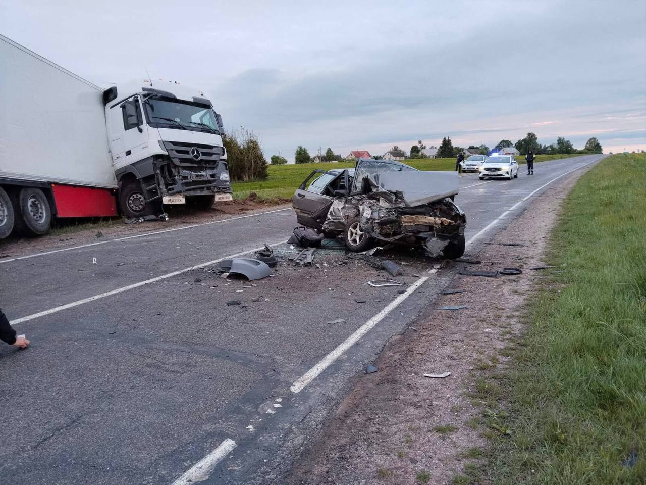 Как сообщили БЕЛТА в прокуратуре Гродненской области, гособвинение в суде поддержала прокуратура Вороновского района. По материалам дела, 55‑летний житель Бобруйска 29 мая 2025 года ночью управлял автопоездом в состоянии алкогольного опьянения, нарушая правила безопасности. Он двигался со скоростью около 89 км/ч при разрешённых 70 км/ч и на закруглении дороги допустил выезд на встречку. В результате произошло столкновение с автомобилем, которым управлял 34‑летний местный житель, ехавший домой вместе с супругой и тремя детьми в возрасте от года до пяти лет.